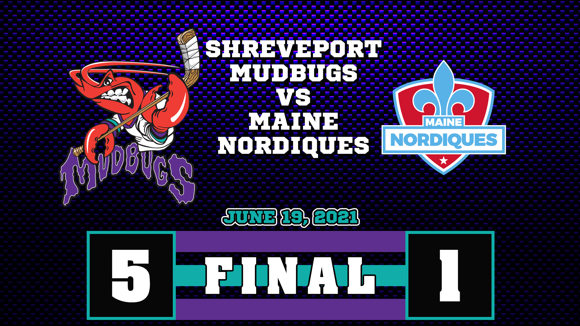The Shreveport Mudbugs (8-1) got a pair of goals from Braiden Dorfman to lead the way to a 5-1 convincing victory over the Maine Nordiques to complete a two-game sweep Saturday night to move into the Robertson Cup Championship game.