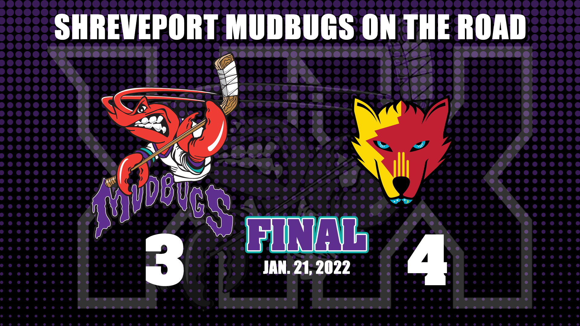 The Shreveport Mudbugs (14-14-5) dramatically tied the game up with one second left in regulation only to come up short, 4-3 in the shootout to the NAHL-South’s best New Mexico Ice Wolves in front of a sold out crowd at Outpost Ice Arenas Friday night.
