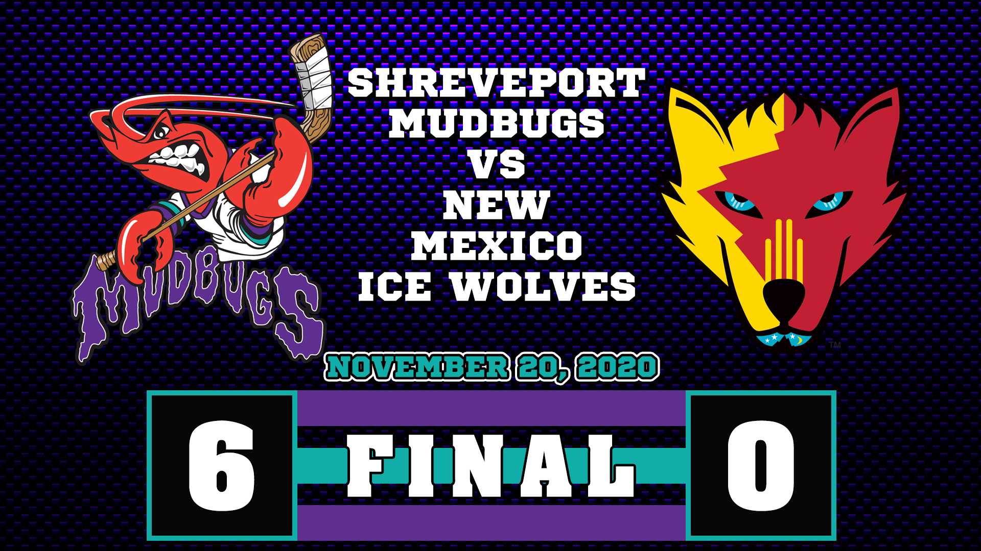 The Shreveport Mudbugs (4-1) used a four-goal third period to help shutout the New Mexico Ice Wolves, 6-0 Friday night for their third straight victory.